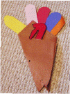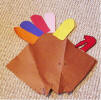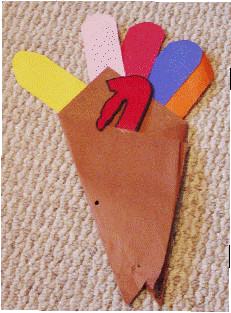 Turkey Cone This cone was used to put popcorn in for our Thanksgiving Feast. The first picture below is one of the turkey opened up. The second picture is one with it folded and stapled for use as a cone. Click on pictures to enlarge.
