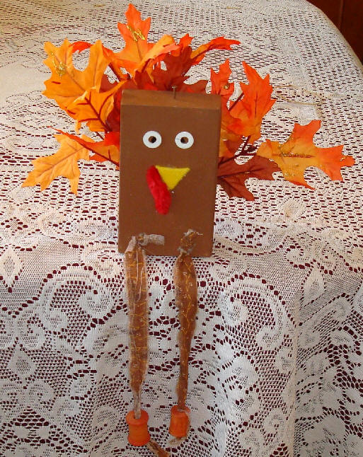 12” strip of ribbon or fabric I tear pieces of brown fabric scraps in pieces 12 inches long and approximately ½ wide. This gives the turkey a primitive look!